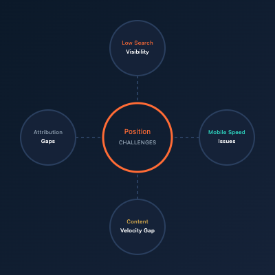 Position Imaging faced stiff competition from established players and well-funded startups in the package management technology market. Despite having superior AI-powered technology, they struggled to capture search visibility for high-intent keywords that drive qualified leads.
