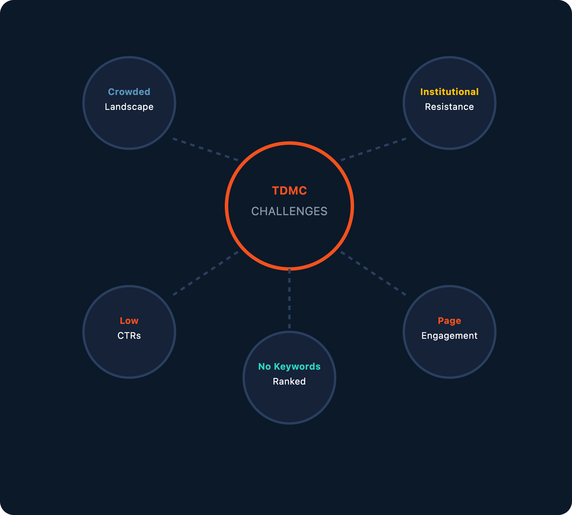 When DAP started working with TDMC, the organization had a website but zero organic search visibility. Not a single keyword ranked. No content strategy existed. The site generated virtually no organic traffic despite Dr. Reinertsen's 40 years of expertise and his message about the oral-systemic connection.