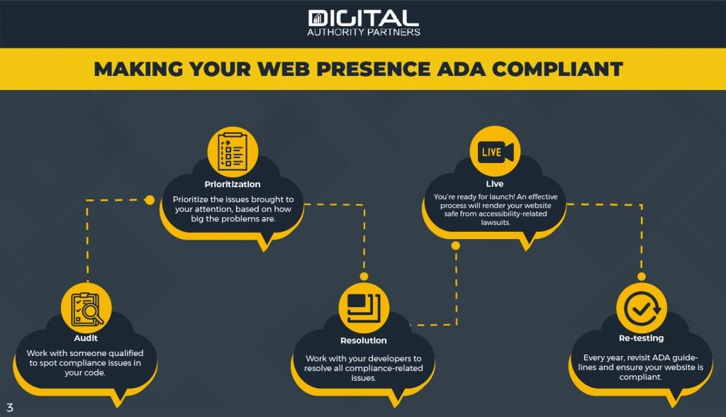 Here are some basic steps to kick off the process of bringing your web assets into compliance:Audit Of Your Website